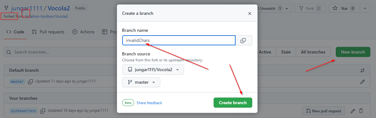 github creating a branch